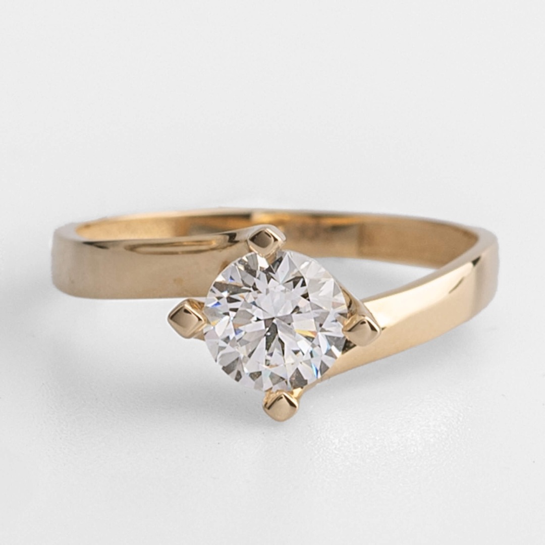 Δαχτυλίδι κατασκευασμένο από χρυσό 14 καρατίων διακοσμημένο με premium synthetic cubic zirconia σε κοπή round brilliant λευκής απόχρωσης στην κεντρική θέση.