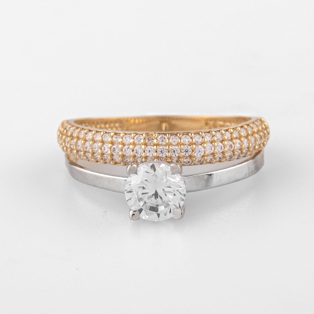 Δαχτυλίδι μονόπετρο με βέρα κατασκευασμένο από χρυσό 14 καρατίων διακοσμημένο με κρύσταλλα ζιρκόν λευκής απόχρωσης.